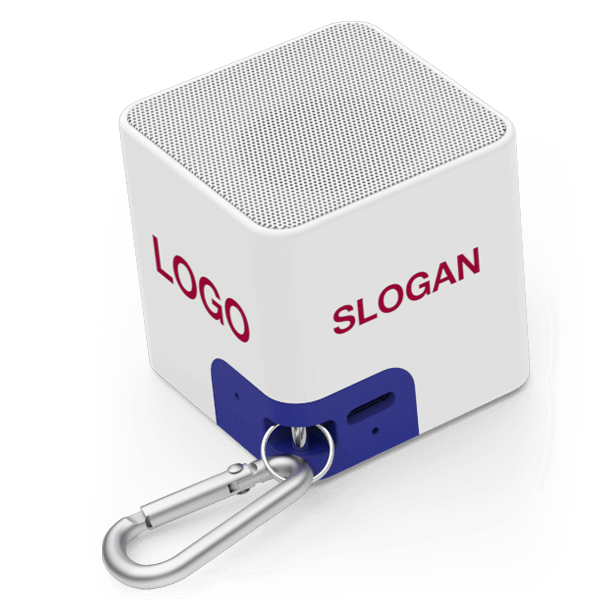 Nuestro altavoz Bluetooth® Cube es una forma audaz de promocionar su organización. Puede personalizar los 4 lados del Cube con su logotipo, eslogan, página web y ¡mucho más! También puede añadir el Carabiner en una de las esquinas del modelo; este borde inferior está disponible hasta en 8 colores diferentes. El Cube es compatible con la mayoría de smartphone y tablets.