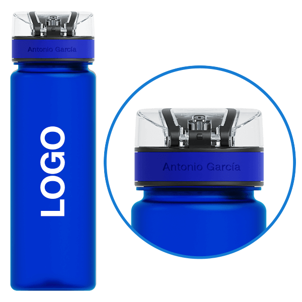 La botella Aqualok está disponible en diferentes colores y está hecha de plástico Tritan™ translúcido resistente con una textura superficial de fácil agarre. Este modelo presenta un diseño de cuerpo simple y elegante con una tapa de cierre seguro y una práctica asa de transporte. Podemos imprimir su logotipo en dos lados de la botella y alrededor de la resistente tapa. Una fantástica botella de agua personalizada que se puede usar a diario. La botella Aqualok también tiene disponible una versión metálica - Aqualok Metal